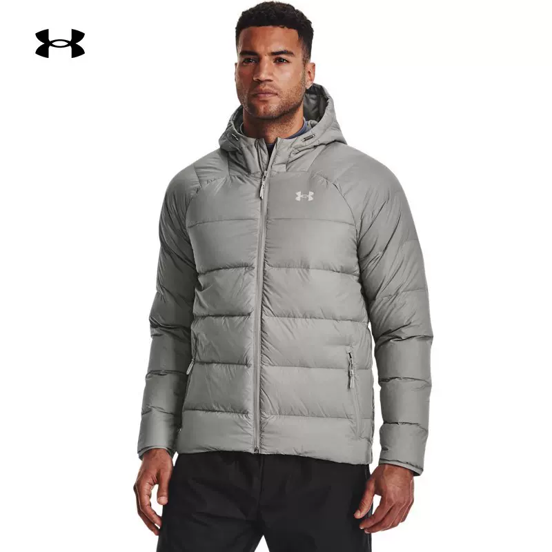 这款UNDER ARMOUR 安德玛 UA Storm 男子运动羽绒服 137265,0%鸭绒填充,UA STORM技术具有防泼水、透气的特性,结实致密的材料与结构,有助于在运动中不惧风吹雨打。宽大的三片布料拼接式风帽采用弹力调节设计,搭配加长粘合帽檐,牢靠的拉链插手口袋,贴合身体,连帽设计,休闲时尚。
