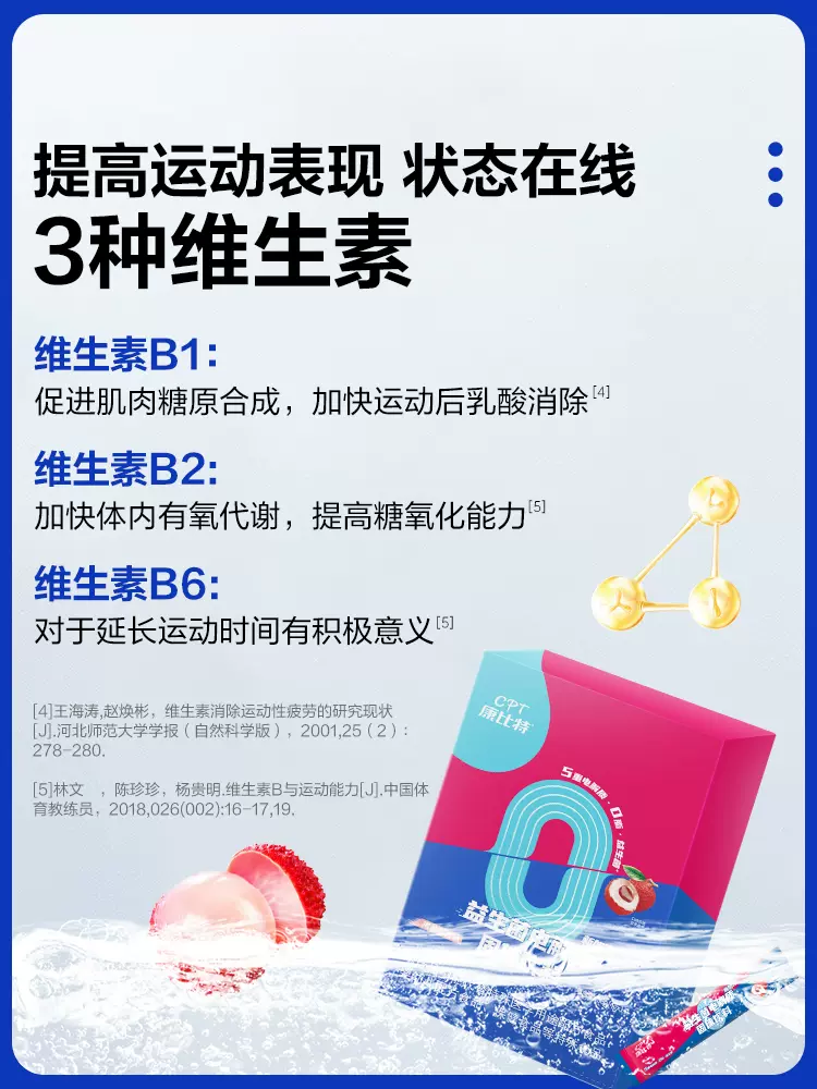 康比特 益生菌电解质固体饮料,现天猫康比特体育科技旗舰店 聚划算售价¥22.87,下单8.7折,可领取¥14天猫优惠券,折后¥5.9包邮。点此搜索更多天猫/淘宝优惠券。 这款康比特 益生菌电解质固体饮料,5:5:3科学搭配,高效补充体液,0脂电解质,富含维生素,解口渴更解体渴,补充电解质,加速代谢,恢复状态。