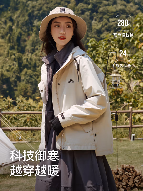 这款Pelliot 伯希和三合一防水冲锋衣,为商场同款(线上线下都销售)。外件和内胆可单独穿着,也可组合穿着,应对多种户外气候。Storm Breath高科技面料,接缝全压胶,防水指数10000mmH₂O,透气指数10600g/㎡/24HR,专业防雨,高效透气,280g抓绒内胆,Warmlock恒温科技,亲肤柔软保暖。展现身材的同时也可在运动的时候更加自如。工装风设计,抽绳可以调节帽子大小,保证头部不淋雨,不灌风。腰部暗藏抽绳,收腰显瘦,穿得厚也不显臃肿。