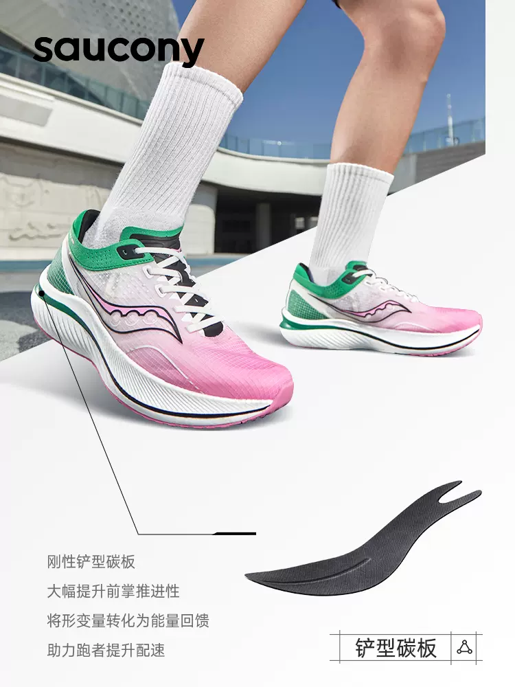 这款saucony 索康尼 SLAY全速 男女专业全掌碳板跑鞋S28192 ,使用品牌最新款中底科技PWRVIZI超临界发泡,缓震效果卓越。1.5MM铲型碳板加持,使得鞋子前掌弯曲刚度高达0.593,从而有效减小蹬离时期跖趾关节的活动范围。