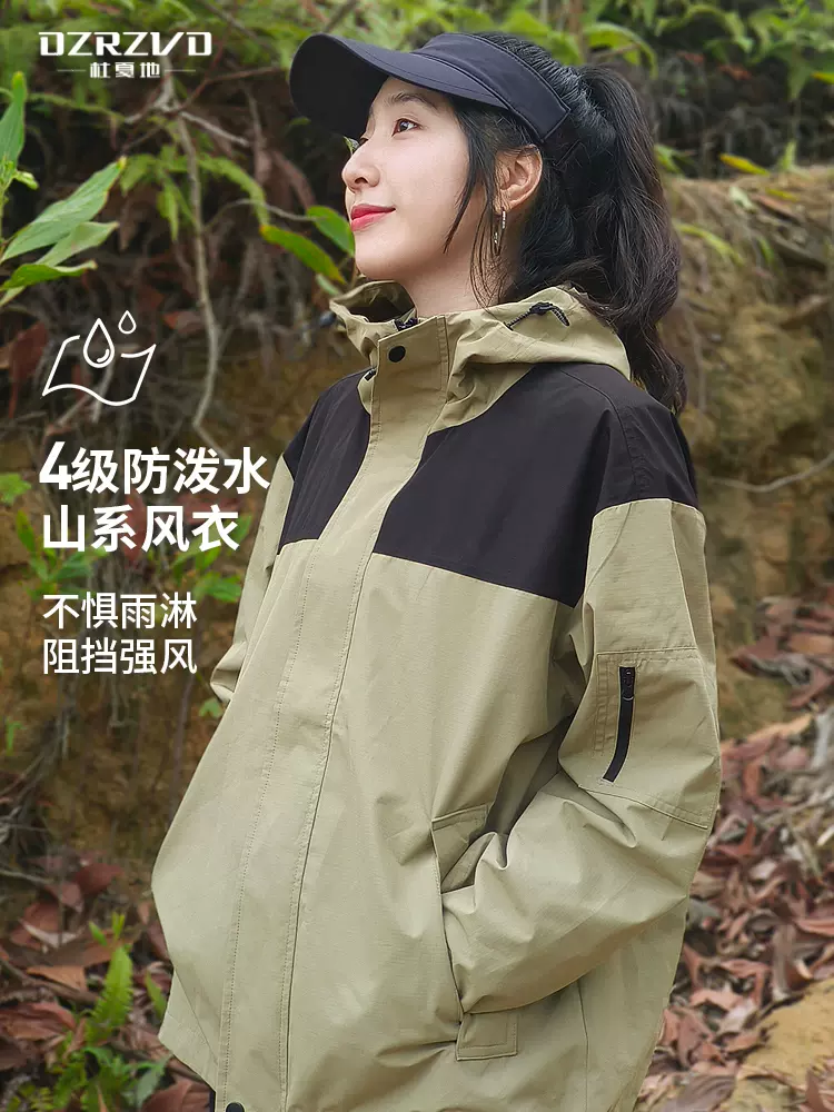 这款 DZRZVD 杜戛地 户外山系工装冲锋衣,4级防泼水,兼具6级寒风防护,耐磨不易褪色,宽松版型,山系配色设计,YKK拉链,下摆抽拉扣设计,兜帽一体化,城市短途户外或是citywalk 均可穿着。