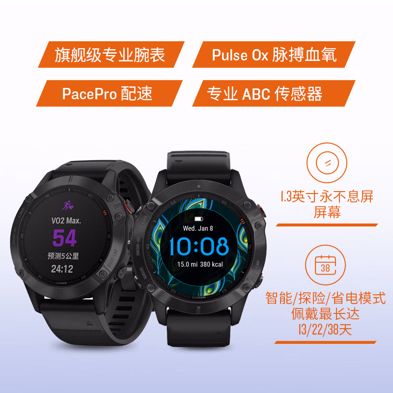 佳明(GARMIN)Fenix6ProPVD邃黑旗舰版GPS黑表带血氧跑步高尔夫户外运动手表,京东商城好评率96%,现百亿补贴特价¥2780包邮。