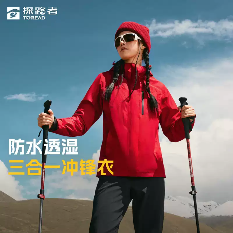 这款Toread 探路者 男女户外徒步抓绒内胆三合一冲锋衣 TAWWBN91704 ,三合一设计,一件多穿,轻松应对不同天气。外件防水指数>10000 mm,透湿率7000g/(m².24h),耐磨性能>20000次,5级表面抗湿性,接缝全压胶,贴合TPU高透湿薄膜汗散得更快 透汗舒爽。抓绒内胆,持久蓄热锁温,24小时持久锁温,防泼水,无惧小雨。