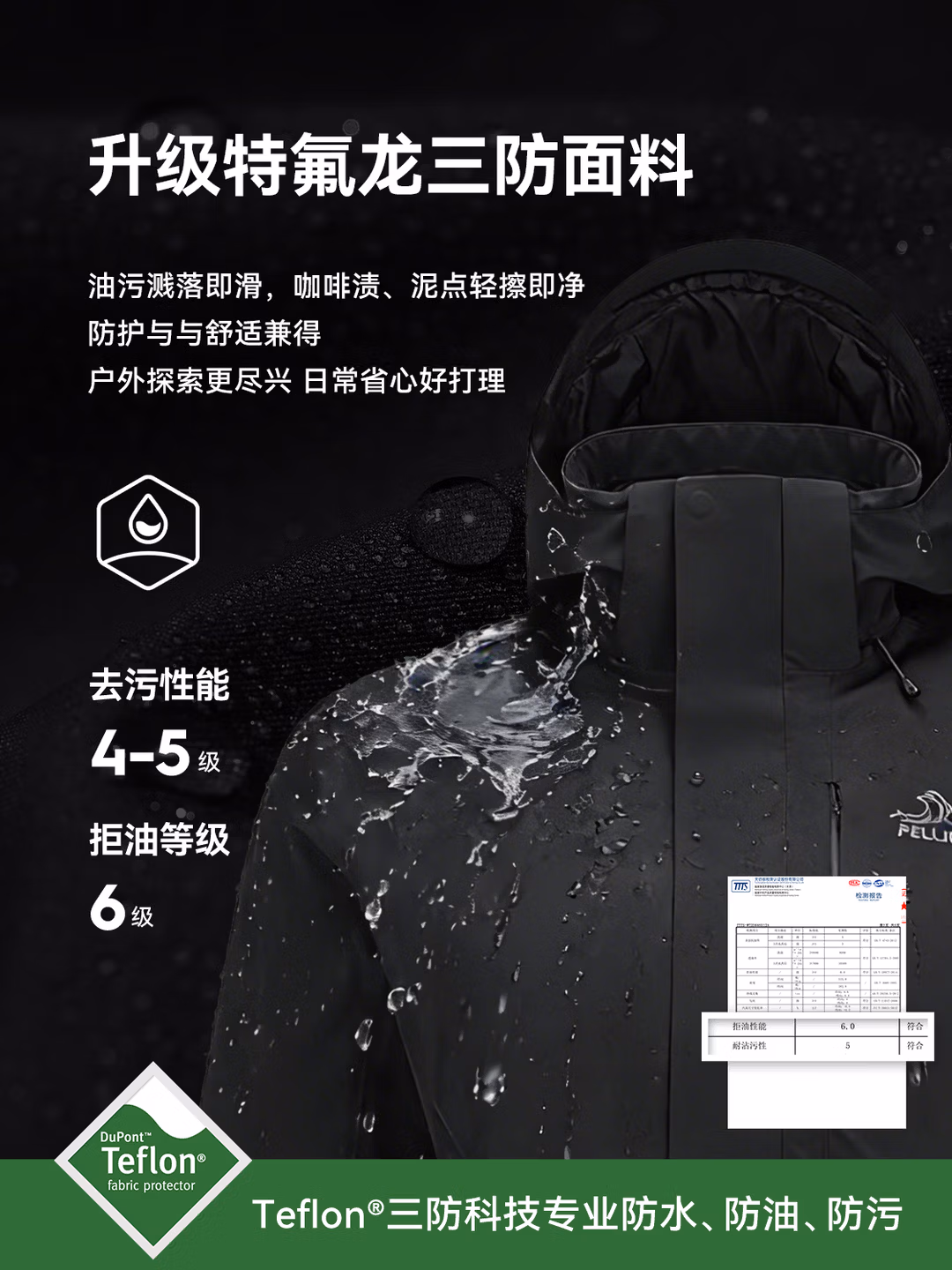 这款Pelliot 伯希和 赤焰 户外冲锋衣115301063,一衣三穿,应对不同气候。3D立体剪裁版型贴合亚洲人身形,运动时更舒适。外壳升级75D消光涤纶平纹布,防水力升级,升级特氟龙三防科技涂层,接缝全压胶,防水指数41126mmH₂O,可防暴雨,透气指数21786g/(m².24h) ,耐磨性能10000+,6级抗油,防水防风、耐脏污,及时透湿,兼顾耐用耐磨性能长久穿着舒适,减少闷汗可能,升级英国COATS高士线缝制,升级更专业的NIFCO®扣具,精巧设计、调节方便。内胆抗静电处理,升级265g双面细腻暖绒更轻更暖亲肤舒适,Warmlock恒温科技,亲肤柔软保暖。