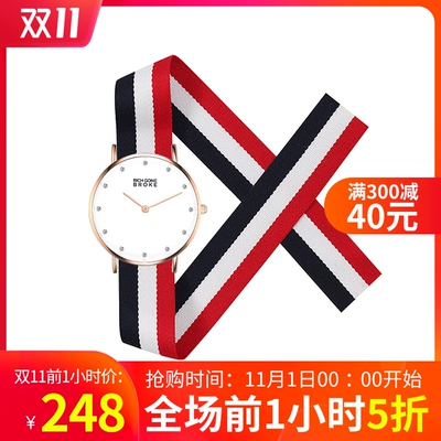 Rich Gone Broke 简约绑带 女式石英手表,顾客评价4.9分,天猫Richgonebroke海外旗舰店售价¥690,11月1日0点开始全场限1小时5折,叠加每满¥300-40跨店满减,实付¥265包邮不含税,圆盘和方盘可选。点此搜索更多天猫/淘宝优惠券。