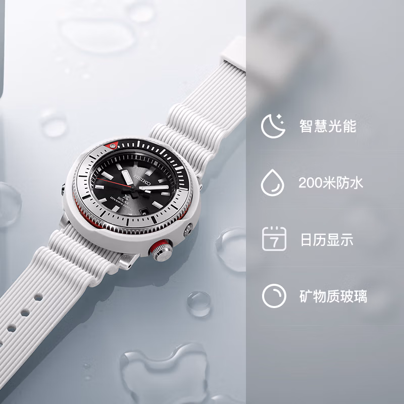 精工(SEIKO)手表 PROSPEX系列日韩表200米防水运动石英白色太阳能罐头男士腕表 SNE545P1,京东商城好评率96%,现价¥1531,参与每满¥200-60活动,Plus会员额外9.5折,实付¥1034.45包邮。