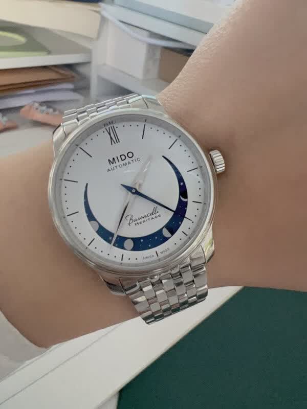 美度(MIDO)瑞士手表 贝伦赛丽系列 微笑款 月相 时尚优雅 机械钢带女表,京东商城好评率91%,现售价¥4750,领取6折京东优惠券 ,实付¥2850包邮。