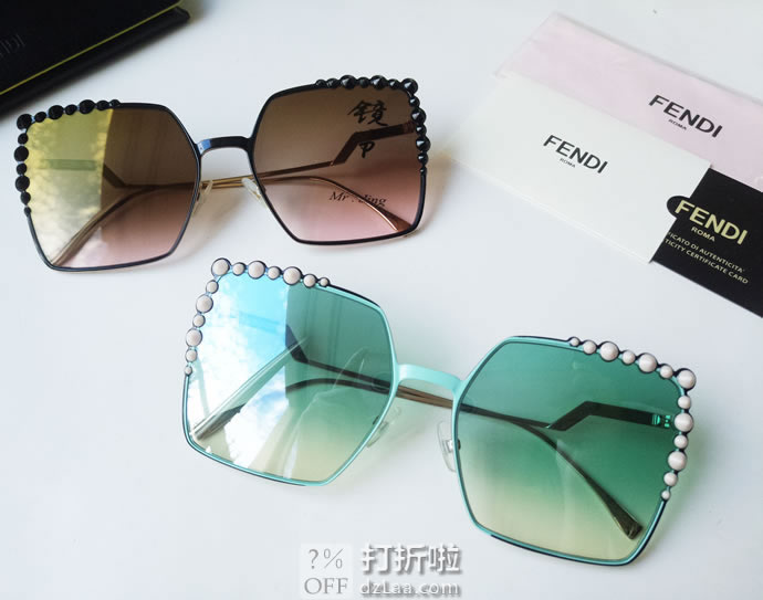 Fendi 芬迪 意大利产 珍珠铆钉 渐变太阳镜 FF-0259-S-60-01ED,产地意大利,凹造型利器。镜框上个性铆钉点缀设计,绿色渐变镜片,100% UV 紫外线防护。时髦清新。阶梯状镜腿设计,logo装饰。镜片宽60mm,鼻间距19mm,镜腿长145mm。